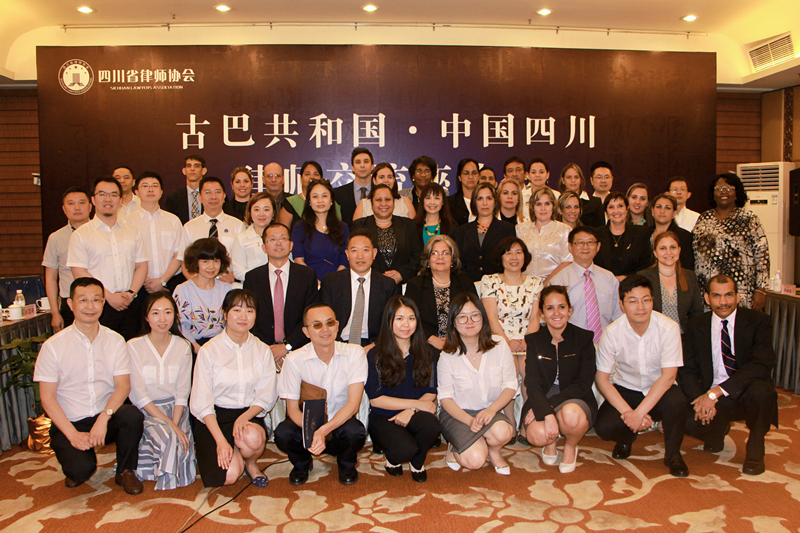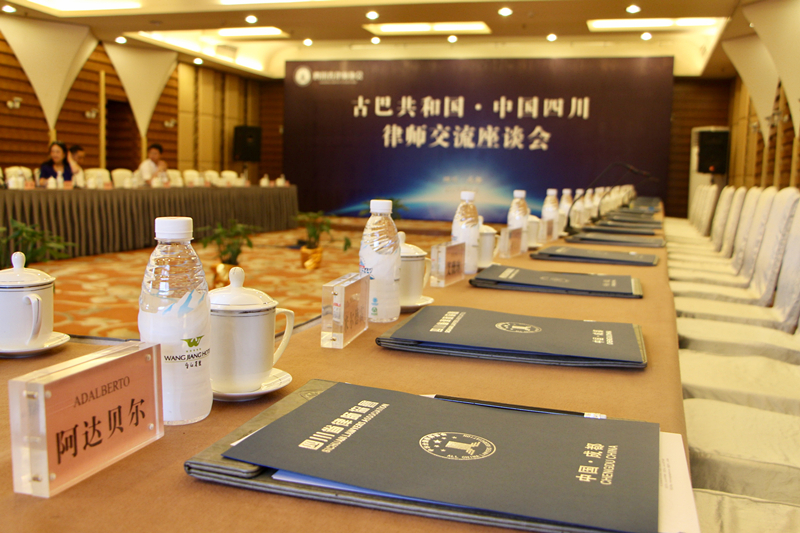 古巴共和国·中国四川律师交流座谈会古巴代表团参会代表有外贸外资部司长玛利亚(MARIA DEL CARMEN·MARCH LLEO)、卡提亚(KATA·ALONSO CANIZARES)、工业部司长达卡里达(GLENDA CARIDAD·MURILLO ALEMAN)、公司食品工业部司长达玛利亚(GILDA MARIA·DIEPPA SANABRIA)、财政和价格部司长耶妮斯里(YENISLEY·ORTIZ MANTECON)以及外贸企业集团、古巴商会、能源矿业部、旅游部、司法部、海关总署、总检察院、总审计院代表参会。中方参会代表有四川省人民对外友好协会、四川省律师代表等人员参加。会议主要就中国和古巴共和国两国法律和律师制度进行交流。
