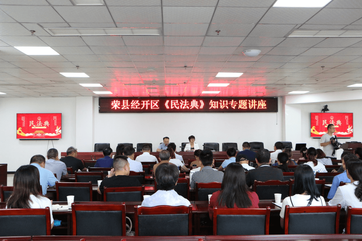 2020年9月4日下午,太琨律(成都)所民法典宣讲团在太琨律创始合伙人朱界平主任的带领下,受邀为四川省荣县经济开发区党政领导干部开展《民法典》专题知识讲座。荣县县委常委、统战部部长、荣县经济开发区党工委书记辜林、荣县经济开发区管委会主任邹小彬、荣县经济开发区管委会副主任张模宣、王凤仪、太琨律(成都)所党支部委员谢燕、刘宏宇、太琨律(成都)所工会宣传委员漆莲惠、实习律师罗典宜和荣县经济开发区等各个部门(单位)约60人参加了本次讲座活动。