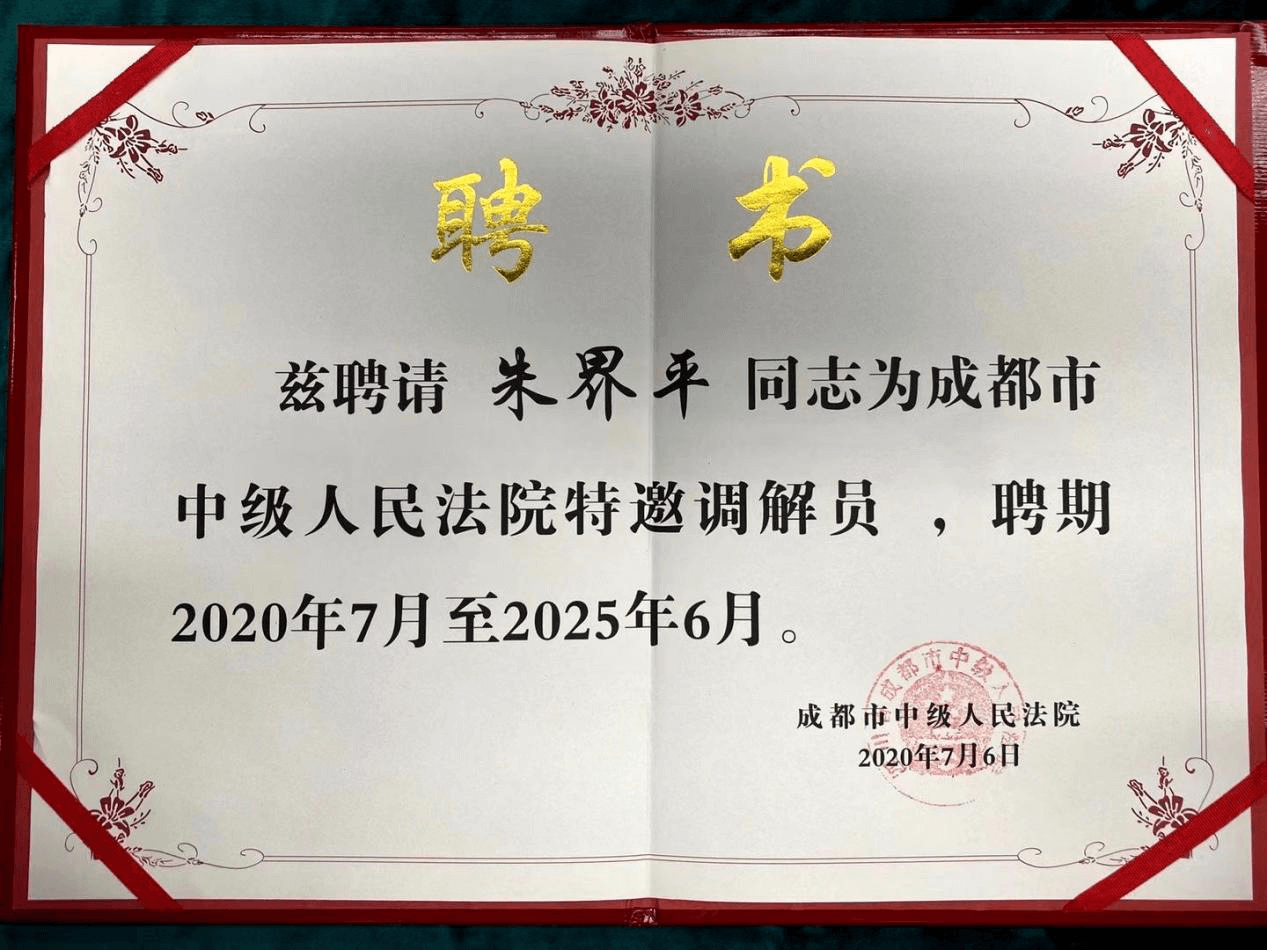 太琨律(成都)所律师被聘为成都市中级人民法院特邀调解员