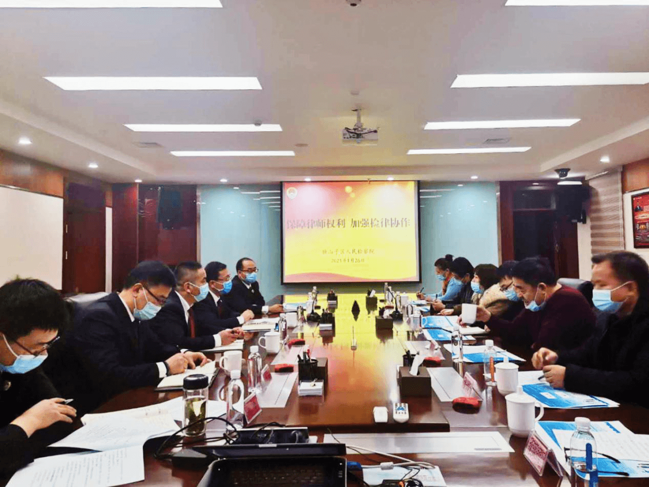 随着学习贯彻习近平新时代中国特色社会主义思想的不断深入,为进一步贯彻落实习近平法治思想,深化检律协作,2021年1月26日克拉玛依市独山子区人民检察院组织召开“保障律师权利,加强检律协作”座谈会,太琨律(奎屯)新疆翰兴律师事务所受邀参加会议,会议由克拉玛依市独山子区检察院副检察长王伟主持,检察长王震做主题发言,受邀各单位畅谈各自的工作体会与建议。