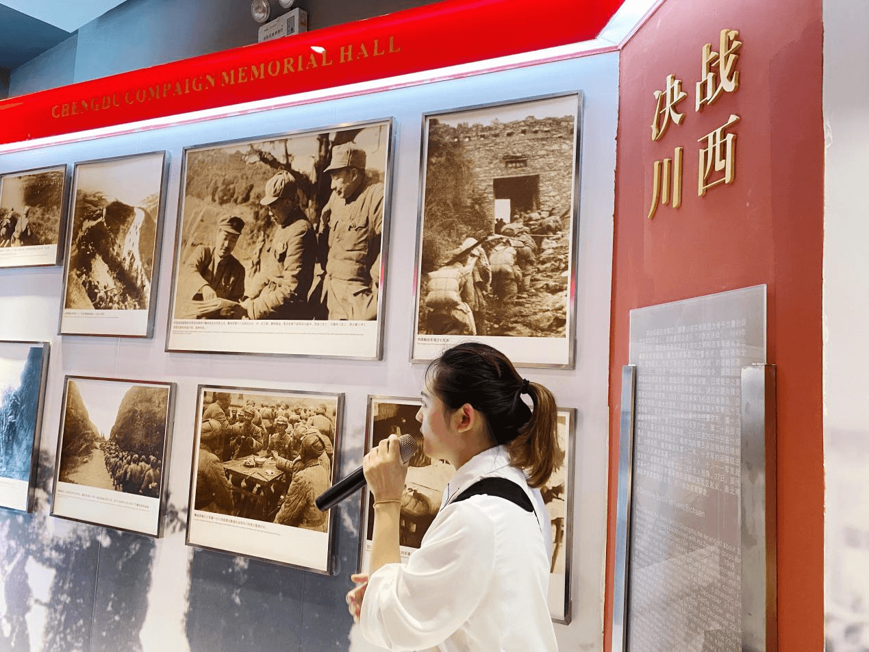 敬献花篮仪式后,大家依次走进成都战役纪念馆,在纪念馆工作人员的讲解介绍中参观了成都战役纪念馆。通过一张张珍贵的历史图片,一个个生动的党史故事,一件件富有历史气息的实物展品,为所有党员生动地讲述了“解放成都”的历史。纪念馆中的每一件文物,每一张图片,每一本书籍,都铭刻着可歌可泣的革命历史篇章,承载着坚如磐石的信仰与信念,彰显着历久弥新的初心使命。