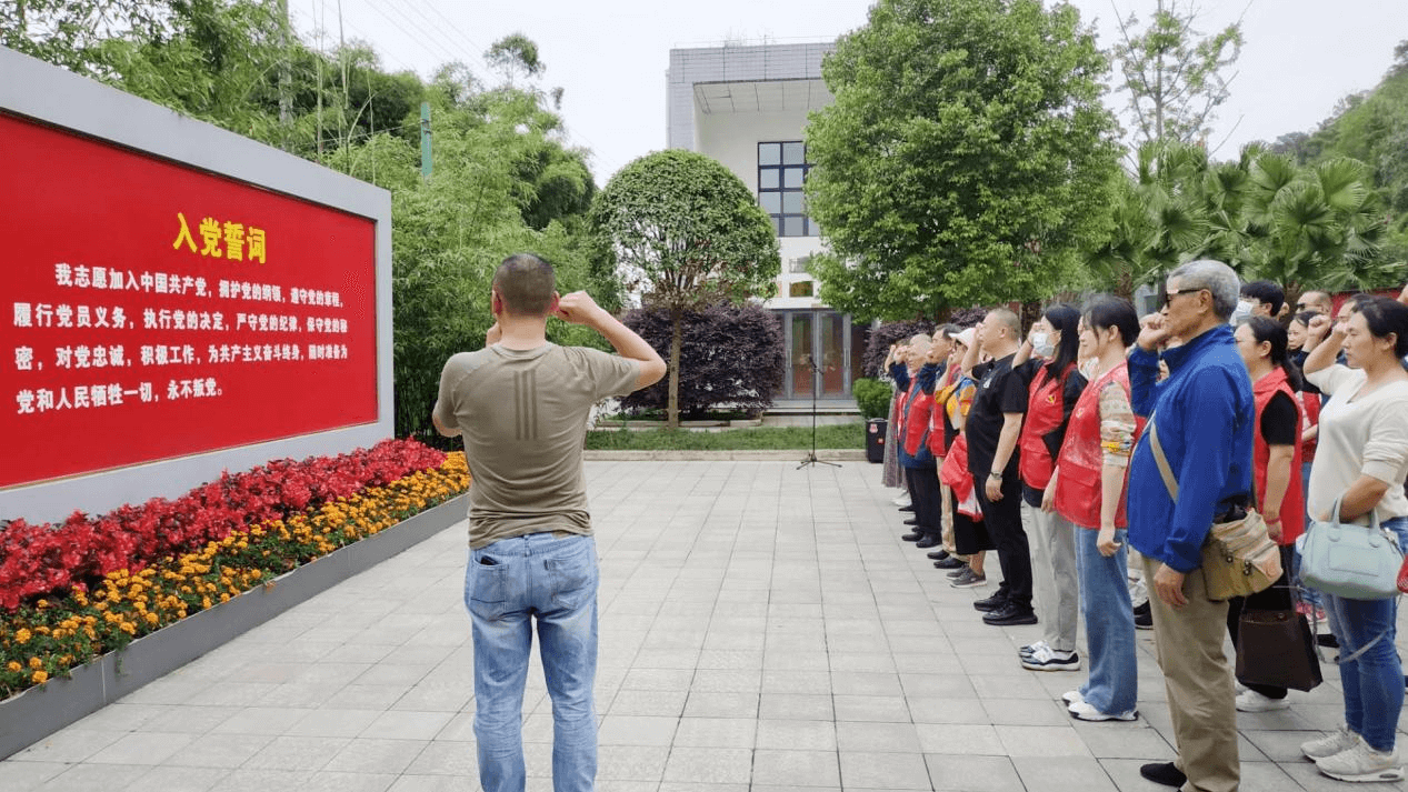全体党员同志来到蒲江县西来镇铜鼓村,首先向成都战役纪念碑敬献花篮。在纪念碑前,全体党员肃穆伫立,齐声高唱中华人民共和国国歌。伴随着庄严的国歌,2名党员同志抬起花篮,缓缓走向纪念碑,向成都战役纪念碑敬献花篮,缅怀在成都战役中牺牲的革命先烈。