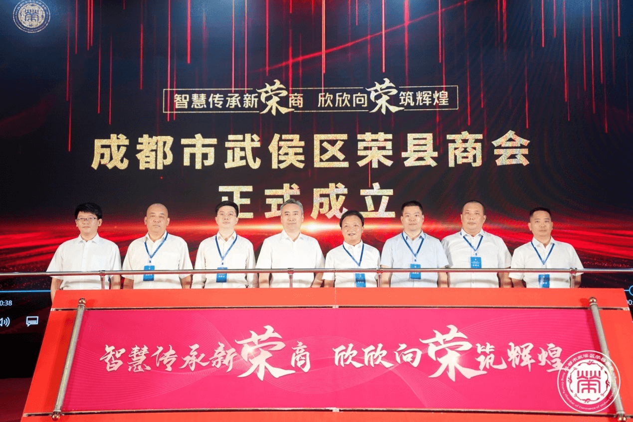 出席成都荣县商会成立大会的领导有:四川省工商联副主席、成都市工商联主席梁伟,自贡市委统战部常务副部长丁琴,自贡市委统战部一级调研员刘义,自贡市工商联主席杨荣春,自贡市委统战部副部长、自贡市工商联党组书记辜林,荣县县委书记韩明祝,荣县人大常委会主任宋成文,荣县政协主席邹崇霞,成都市武侯区委统战部常务副部长吴瑜聪,成都市武侯区工商联主席孙伟,荣县县委常委、县委办主任倪志勇,荣县县委常委、组织部部长周名阳,荣县人民政府副县长胡爱华,荣县人民政府副县长单德朋,成都市武侯区工商联副主席刘轶及四川省自贡市各区县工商联主要负责同志参加。