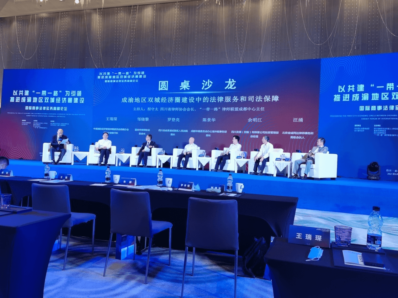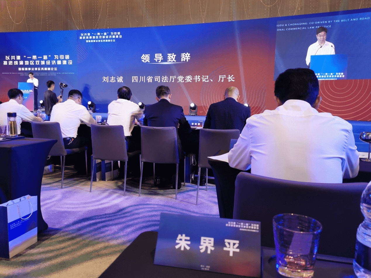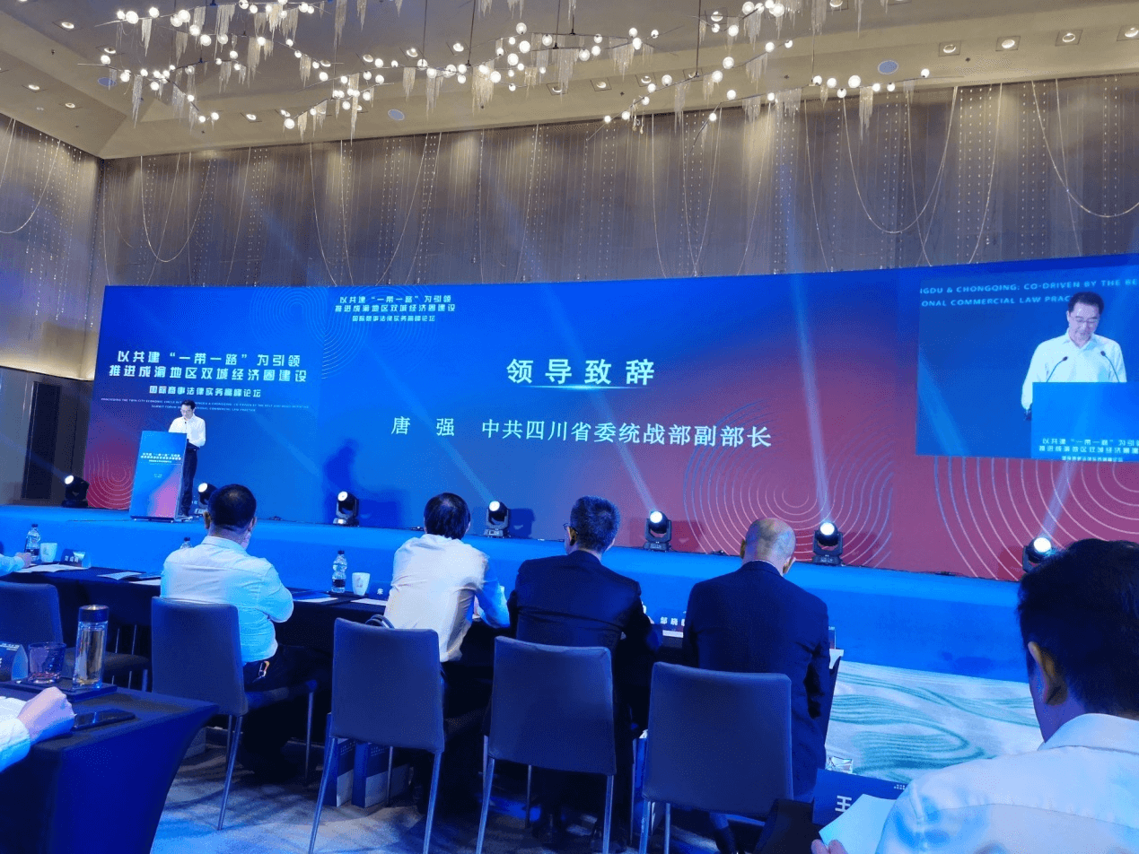 2021年9月25日由四川省委统战部和四川省司法厅指导,四川省委统战部新的社会阶层人士联谊会、重庆市律师协会、四川省律师协会、“一带一路”律师联盟成都中心联合主办的以共建“一带一路”为引领,推进成渝地区双城经济圈建设国际商事法律实务高峰论坛在成都W酒店会议厅举行。出席本次高峰论坛的领导有:四川省政协副主席刘成鸣、四川省委统战部副部长唐强、四川省司法厅厅长刘志诚、全国政协委员、四川省新联会会长蓝逢辉等,会议开幕式由四川省司法厅副厅长王强主持。太琨律(成都)所主任朱界平律师受邀参加了本次会议。