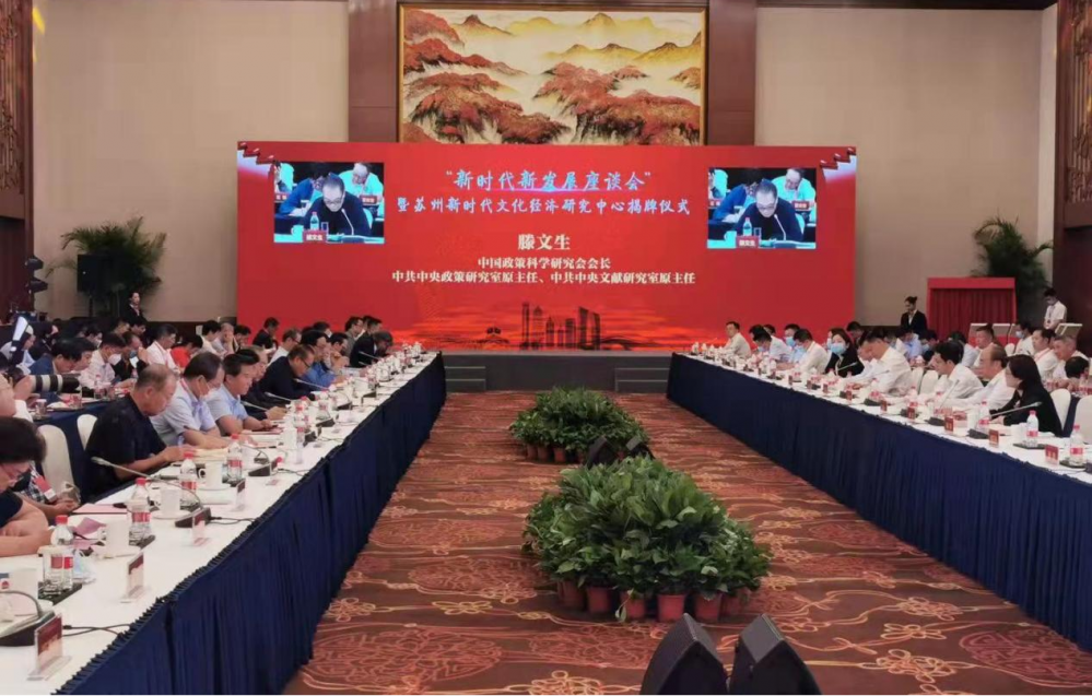 在简要介绍苏州经济社会发展情况后,吴庆文说,刚刚闭幕的苏州市第十三次党代会,明确了苏州今后五年的奋斗目标和主要任务,也分析了发展中存在的问题和不足,亟需包括中国政策科学研究会在内的高端智库为我们精准把脉、谋策支招。对于各位专家的宝贵意见,相关部门要认真研究、充分吸收、抓好落实。我们将以苏州新时代文化经济研究中心的成立为契机,进一步深化双方合作、导入优质资源、加快人才招引,更好助力苏州文化产业高质量发展。