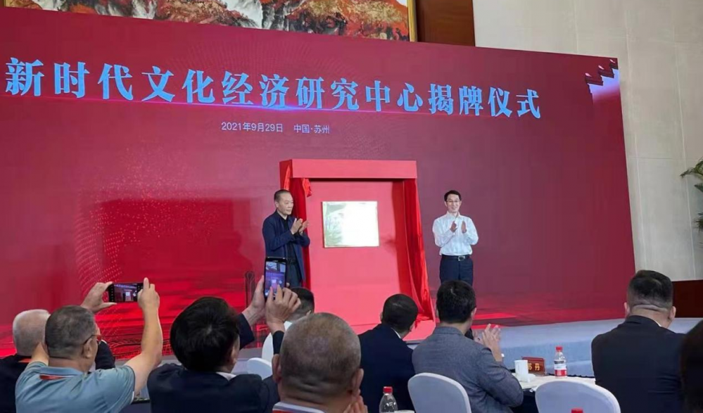 中国政策科学研究会会长、中共中央政策研究室原主任、中共中央文献研究室原主任滕文生和中共苏州市委副书记、代市长吴庆文共同为“苏州新时代文化经济研究中心”揭牌