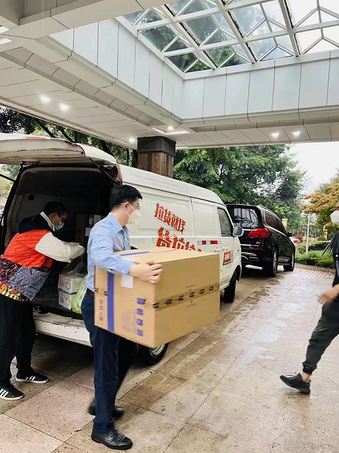 成都疫情爆发以后,成都市锦江区成龙路街道、三圣街道片区是感染比较集中的区域之一,也是成都市最早实施社会面管控的区域。由于静态管理期间,为向居民、志愿者提供更好的防护条件,降低疫情扩散风险,朱界平主任通过省市相关部门、锦江区人民政府和相关街道取得了联系,希望能给成都市疫情区捐赠一些医疗物资。