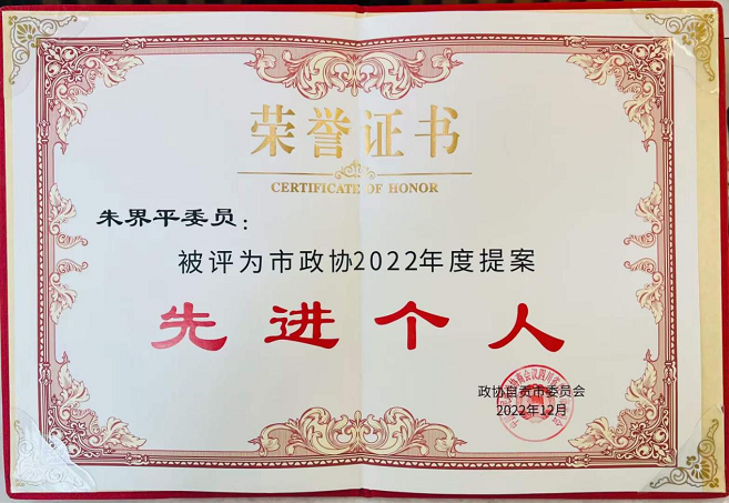 会议对2022年度提案工作先进单位、优秀提案、提案先进个人等进行了表彰。四川琨爵律师事务所主任朱界平获评为自贡市政协2022年度提案先进个人荣誉称号。