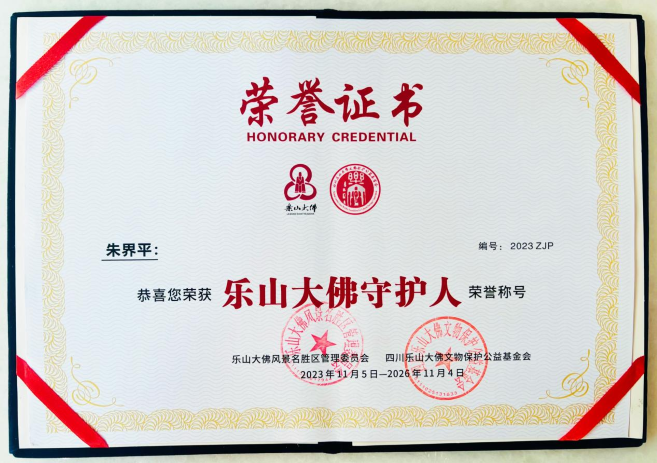 朱界平主任荣获乐山大佛守护人荣誉称号