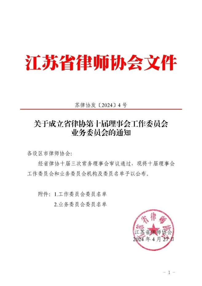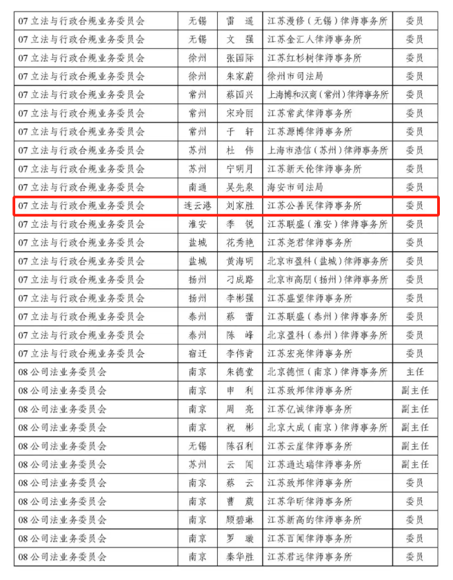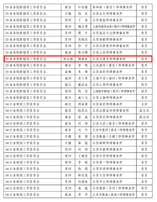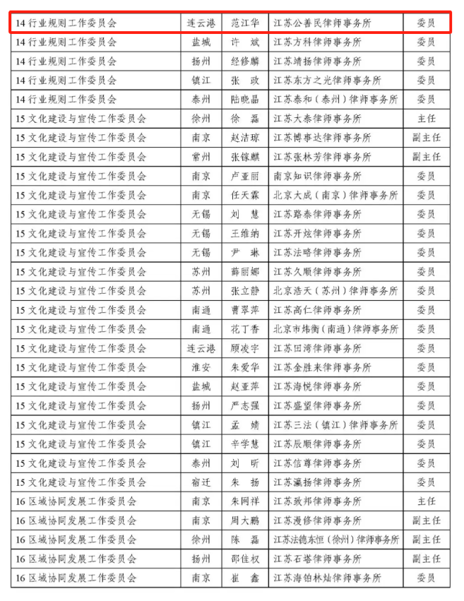 太琨律(连云港)江苏公善民律师事务所律师当选江苏省律协工作委员会、业务委员会委员
