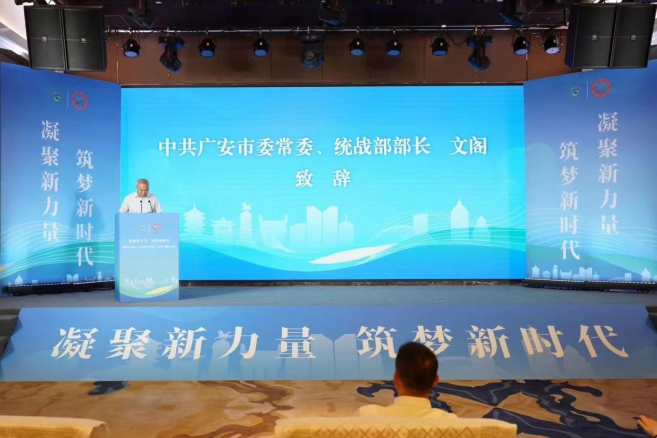 四川省委统战部副部长张荣、四川省新联会会长、全国政协委员蓝逢辉、四川省委统战部新阶处处长李金润、广安市委常委、统战部部长文阁等领导参加会议。