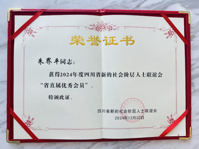 朱界平主任荣获2024年度四川省新的社会阶层人士联谊会省直属优秀会员