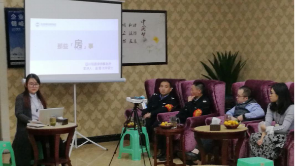 温雯,西南交通大学法学硕士,曾就职于成都市中级人民法院知识产权庭。此次佳宏路社区“法治大讲堂”活动中主要讲解了在婚姻法、继承法和家事纠纷中常见的一些法律问题。