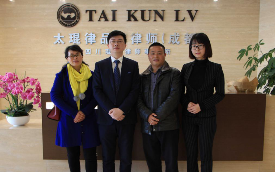 根据成都市依法治市领导小组办公室、中共成都市委组织部、中共成都市政法委、成都市民政局、成都市司法局、成都市财政局、成都市人社局、共青团成都市委关于《推进社区(村)法律之家”建设》的通知要求,2017年12月8日上午,成都市锦江区狮子山街道司法所王志明所长一行莅临太琨律品牌律师(成都)所参观交流,并就建设“社区法律之家”建设双方达成初步共建方案。在会议期间王所长一行详细听取了我所在打造国际化、专业化、品牌化、精英化律所的发展情况。对太琨律(成都)所精英化的人才战略和优质化的法律服务表达了高度赞扬。太琨律品牌律师全球合伙人、主任朱界平律师、太琨律(成都)行政部专员武旻琦等参加了本次会议。