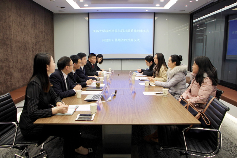 2017年12月29日,在新年来临之际,成都大学与太琨律(成都)四川琨爵律师事务所共建法学专业实践基地签约授牌仪式在太琨律(成都)所大会厅举行。本次签约仪式双方出席的代表为成都大学政治学院副院长邓陕峡教授、法学系主任唐文娟副教授、实验室主任刘剑老师、法学系刘德莉老师等,太琨律全球合伙人、主任朱界平律师、党支部书记辜健生律师、知识产权部廖其龙、张安贤律师、行政部漆莲惠、武旻琦等参加了本次签约仪式。