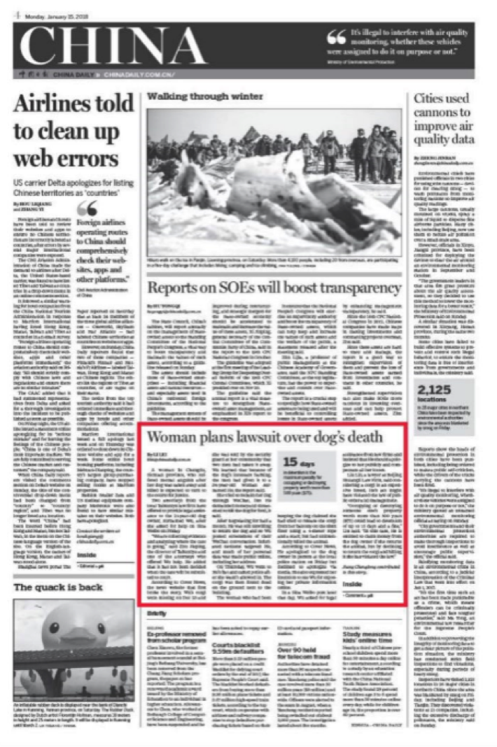 2018年1月14日下午,太琨律成都所主任朱界平律师接受了CHINADAILY国际部记者的采访。作为近日全国约4亿网友关注的“柯基Lion之死”案的律师团首席律师,朱界平律师向记者就案件目前进展的情况做了简要介绍。同时表达了希望通过这件有影响力的案子,能让更多的人学法、知法、守法。