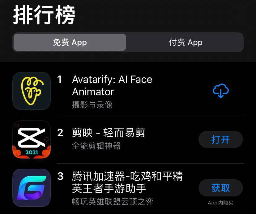 该特效的制作软件叫Avatarify。而就在Avatarify受到网友强烈追捧的情况下,却在3月2日凌晨,从中国区苹果应用商店(AppStore)悄然下架,且官方未说明下架原因,从爆火到退场,Avatarify用了数天时间。
