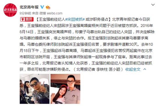 王宝强前经纪人宋喆因涉王宝强离婚案相关问题,并可能构成犯罪,于近日被警方抓获。
