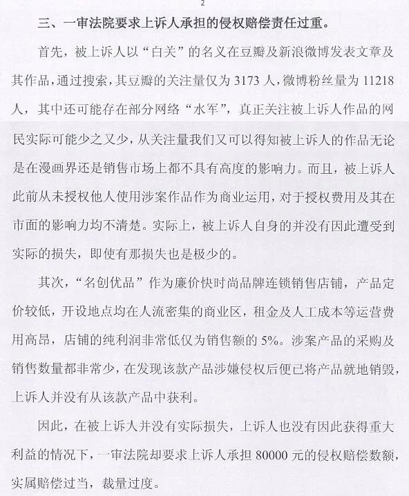 2008年,我用“白关”这个网名,注册了豆瓣网,开始陆续在上面发表漫画作品。2012年,创作了一组名为《极简动物园》的漫画作品。2016年3月,有网友告诉我作品被侵权,印在本子的封面上出售。之后陆续有朋友发现,并确定大多数都是在一家为“名创优品”的店里卖。2016年7月22日,经过几个月准备,正式到北京海淀区人民法院起诉“名创优品”(后面简称“品”)。2016年10月13日,开庭,第一次庭审。2017年3月20日,收到一审判决书,判我们胜诉,责令“名创优品”停止生产销售印有《极简动物园》图案的素描本,赔偿经济损失8万元,公开道歉。2017年3月28日,名创优品提出上诉。提交上一级法院继续审理,等了差不多半年多,2017年10月,终于接到我们律师通知,就在下个月,11月的2号,二审开庭。(微信公众号:不完美星球)
