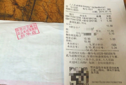 和往常一样,7月13日,周先生到离家不远的人人乐超市(成都新华购物广场店)购买生活用品。结账后回到家,他突然发现,结算小票背面被印上了一个红章,上面写着“购物时已确认商品未过保质期”。