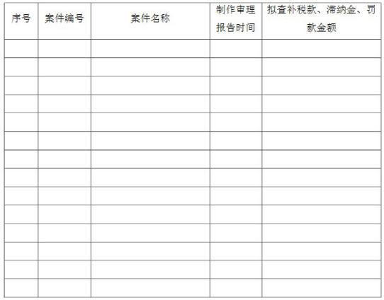 2.“案件编号”为稽查局立案审批表所制编号;“案件名称”应包括被查对象名称、违法行为性质等关键信息;“制作审理报告时间”为案件经稽查局集体审理后,稽查局审理部门制作审理报告的时间。