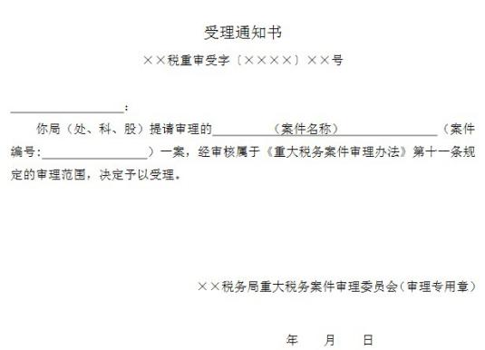 4.本通知书一式两份,一份交案件提请单位,一份由审理委员会办公室存档。