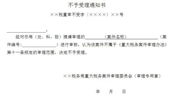 3.签署的日期为审理委员会主任或副主任批准不予受理之日。