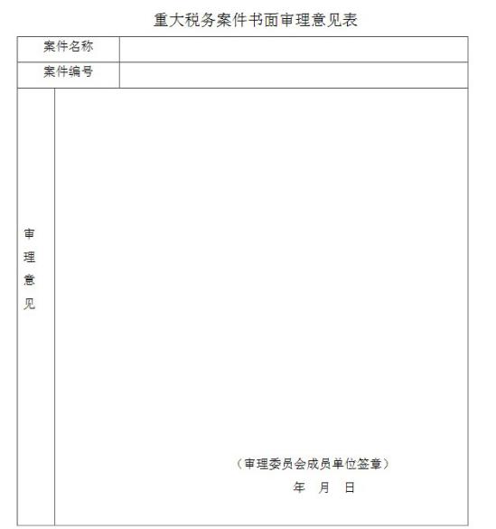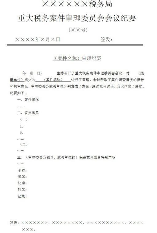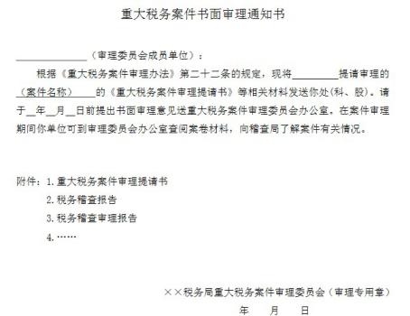 1.本文书在重大税务案件审理委员会办公室分送材料征求成员单位书面审理意见时使用。