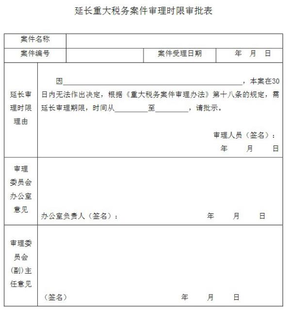 第十八条 重大税务案件应当自批准受理之日起30日内作出审理决定,不能在规定期限内作出审理决定的,经审理委员会主任或其授权的副主任批准,可以适当延长,但延长期限最多不超过15日。