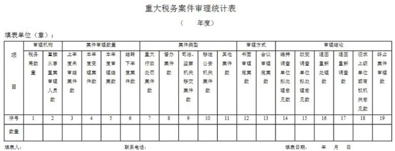 3.“直接从事重案审理人员数”指各级税务机关法规处(科)内负责重案审理工作的人员,不含处、科领导。