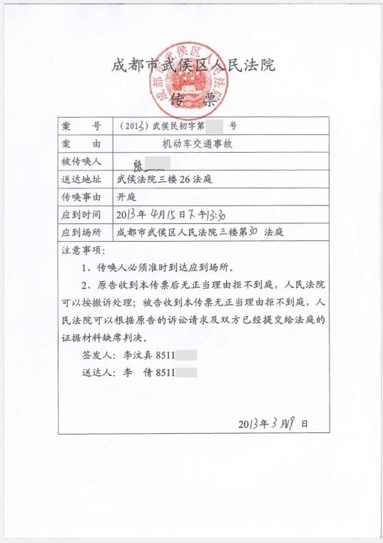 2013年4月15日13时30分,太琨律(成都)交通事故法律事务部律师代理原告陈某案在成都市武侯区人民法院开庭。该案为道路机动车交通事故责任纠纷一案。太琨律(成都)交通事故法律事务是太琨律极具竞争力的专长领域之一,太琨律交通事故法律事务团队是由具有丰富的执业经验、深厚的理论功底与出色的诉讼技巧的精英律师队伍组成。